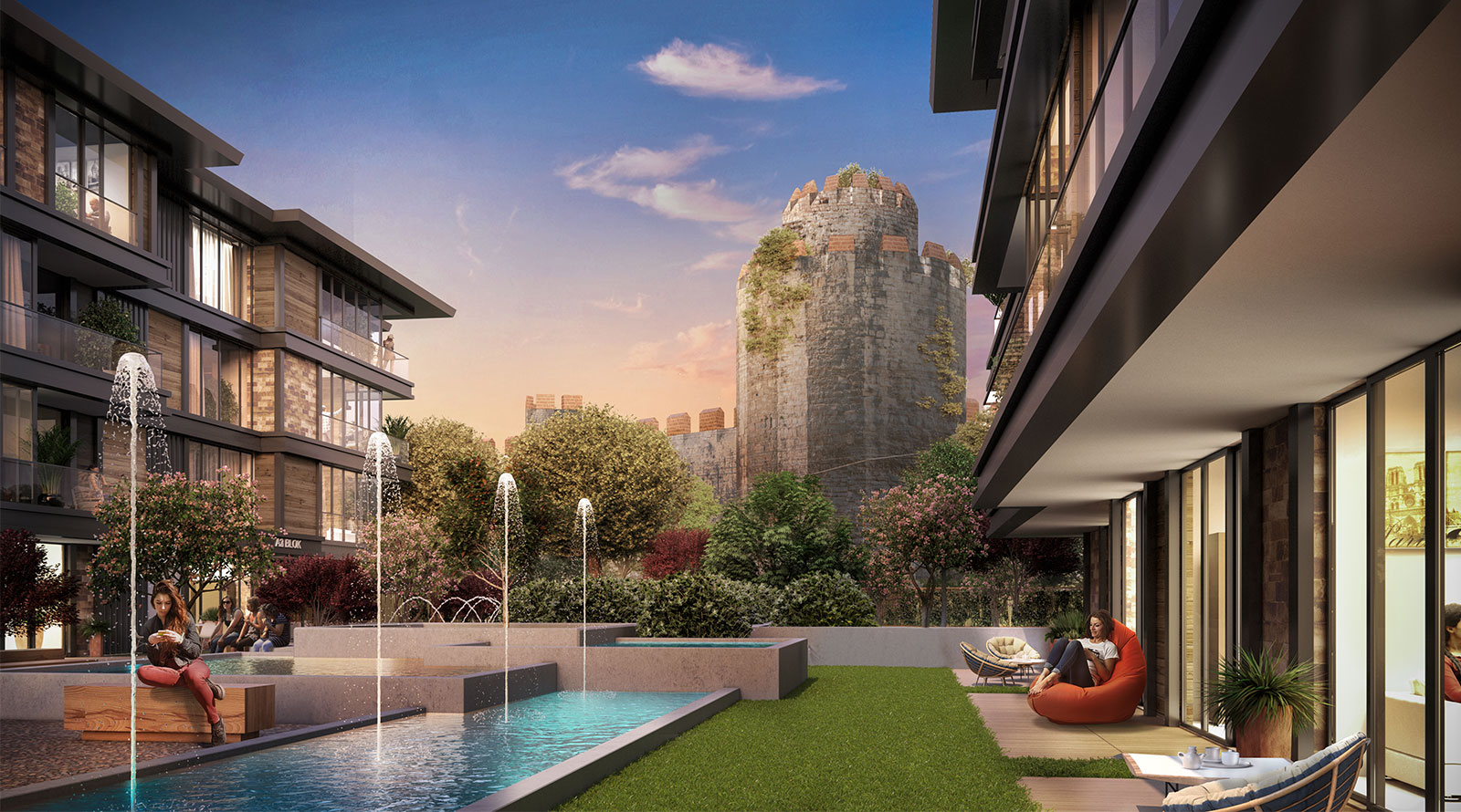 Right next to the Istanbul Walls with 1.500 years of history, this project meets Marmara Sea and the Princes’ Islands with the green world of 31.000 m2 landscape and brings the most vivid colours of the nature to your life surrounded by history.